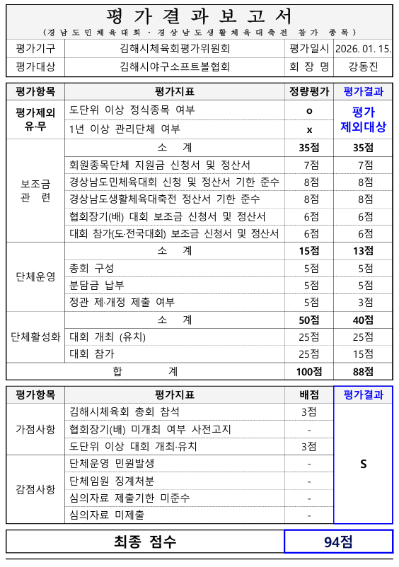2025 김해시야구협회 감사결과 및 평과결과 보고서