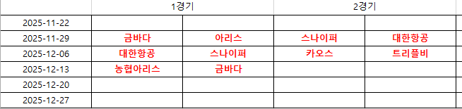 플레이오프는 리그가 끝난 다음주 부터 진행 됩니다. 자세한 일정은 추후에 공지 하겠습니다. |
