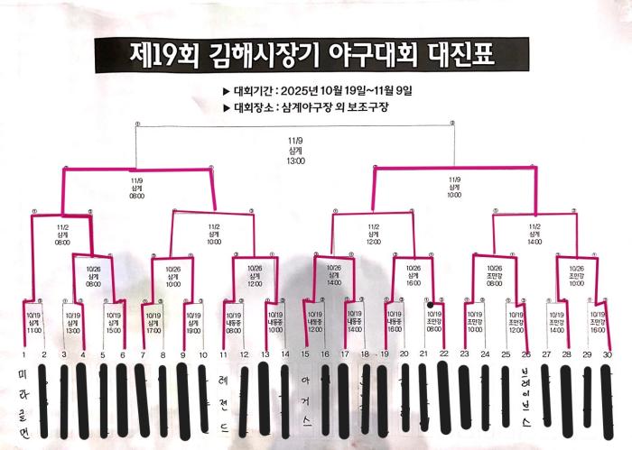 제19회 시장기야구대회 대진표 4주차